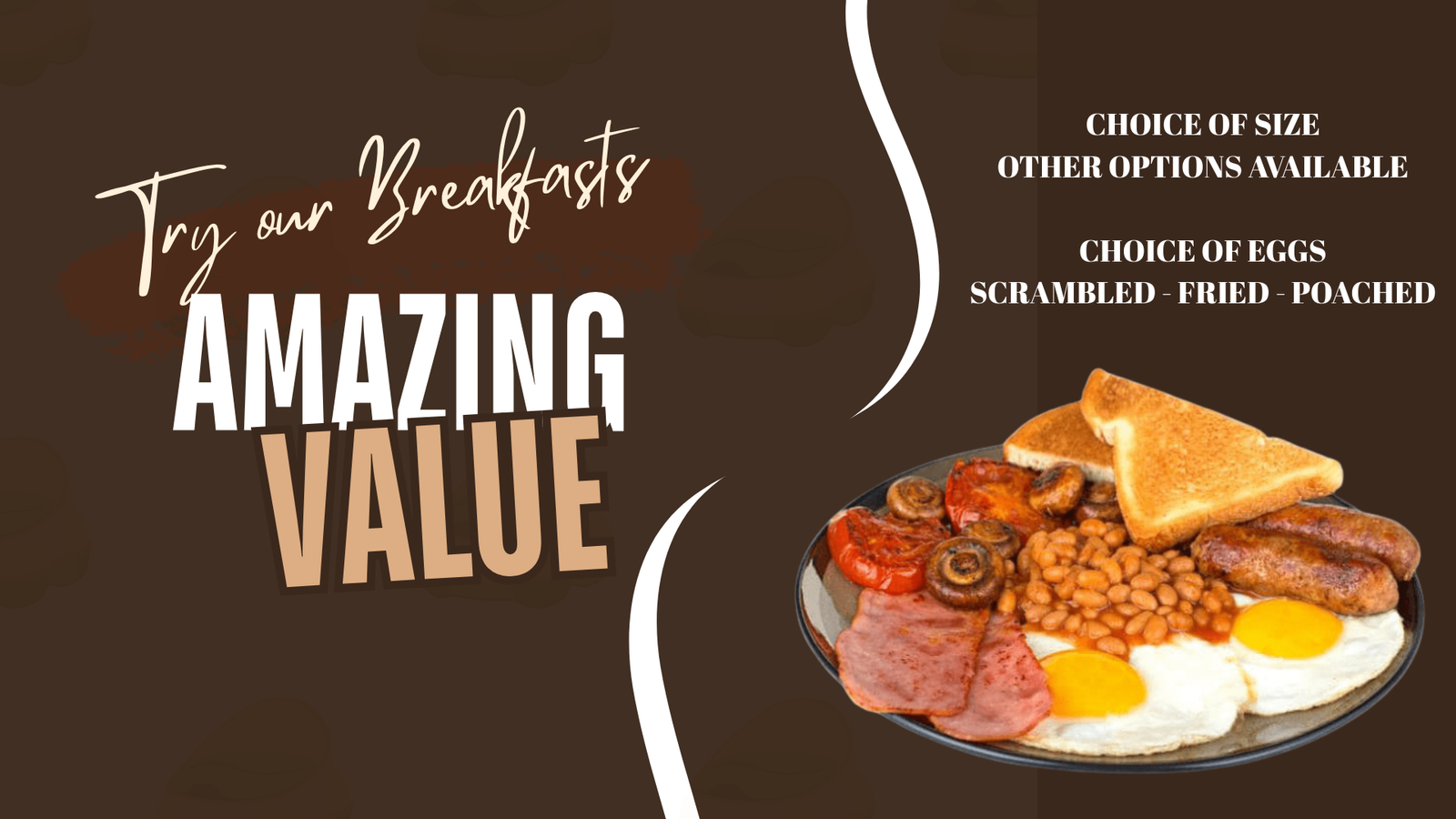 Breakfast is served every day after 10:00am. A choice of a full breakfast, small breakfast and a range of sandwiches, other options are available.